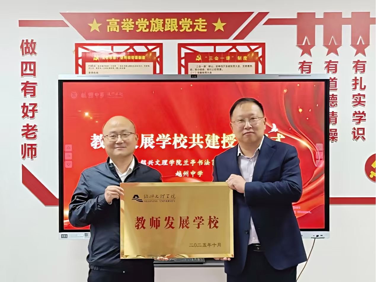 兰亭书法艺术学院与越州中学举行“教师发展学校”共建授牌仪式