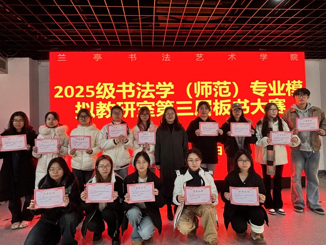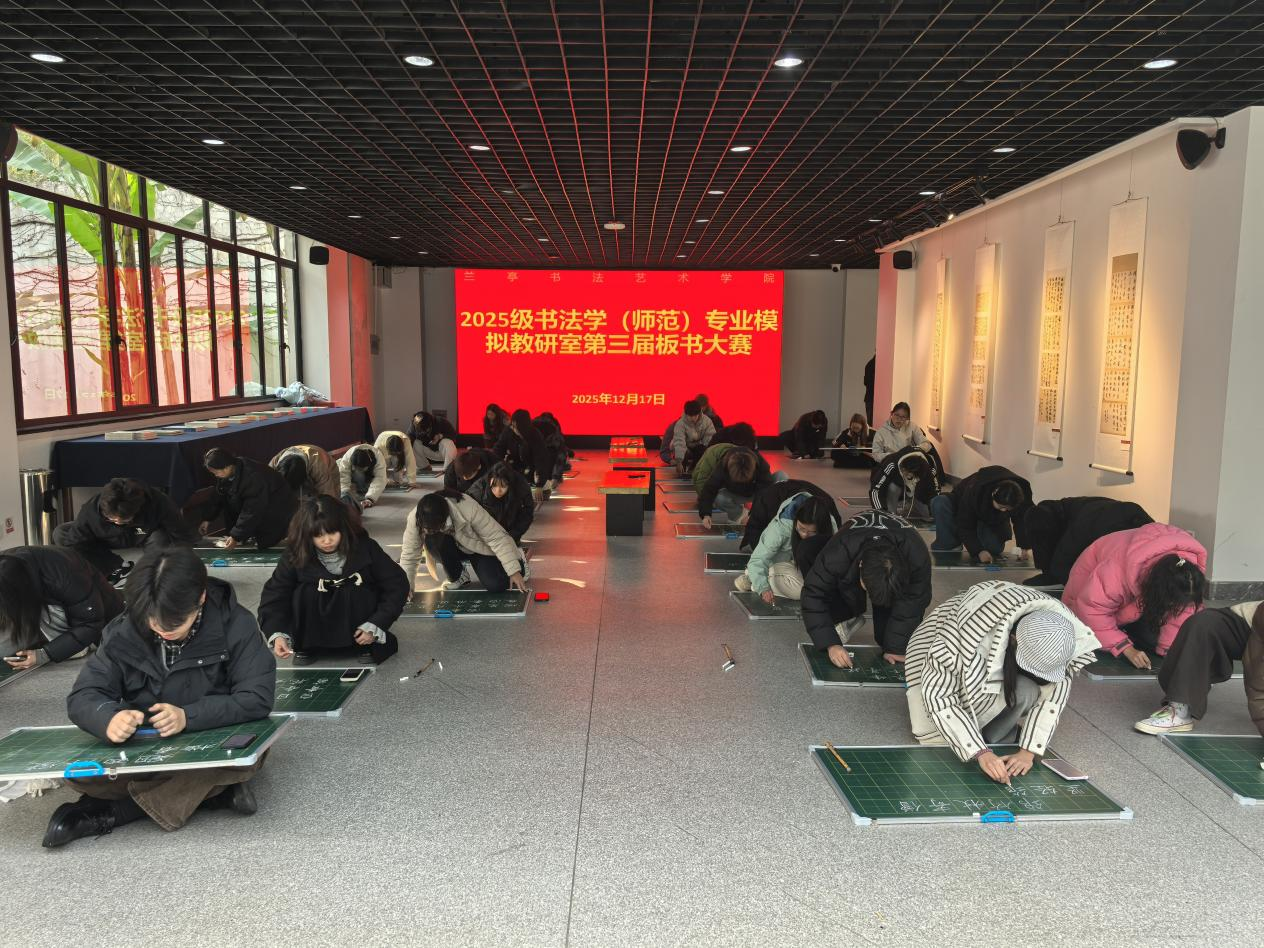 为切实夯实师范生专业基础,全面提升板书书写技能,搭建起以赛促练、以展促学的优质实践平台,12月17日,兰亭书法艺术学院精心筹备并成功举办了2025级师范生板书大赛。此次大赛紧密聚焦书法艺术在课堂实践中的有效运用,致力于着力提升学生的板书设计与书写能力,为师范生未来的教学工作筑牢根基。
