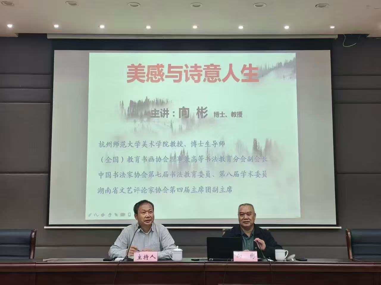 2025年10月20日,“美感与诗意人生”主题讲座在兰亭书法艺术学院报告厅举行。杭州师范大学美术学院教授、博士生导师向彬应邀作学术分享,本次讲座由兰亭书法艺术学院院长刘小华主持,兰亭书法艺术学院全体在校学生到场聆听。