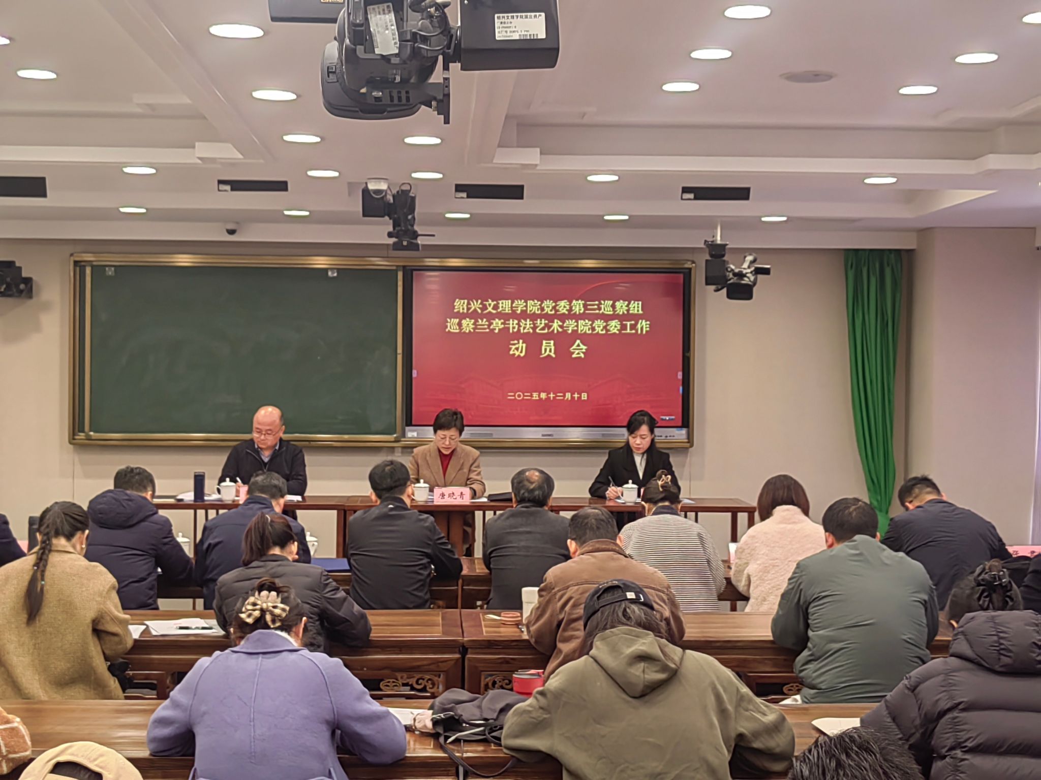 根据学校党委统一部署,12月10日上午,学校党委第三巡察组巡察兰亭书法艺术学院党委工作动员会在兰亭书法艺术学院A栋202教室召开。校纪委书记唐晓青出席会议并讲话,党委第三巡察组组长俞国芬、副组长徐浩、成员裘波和张君,党委宣传部副部长刘灵娟、党委巡察办干部曹伟杰、高健以及兰亭书法艺术学院党委领导班子成员、科级以上干部、专业主任、党支部书记、在校教职工等参加会议。会议由兰亭书法艺术学院党委书记孙仕龙主持。