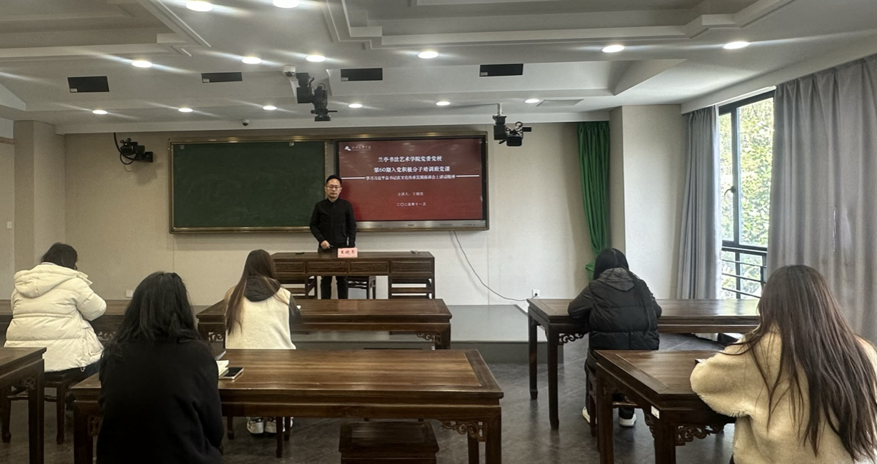 为强化入党积极分子的文化自信与政治素养,2025年11月27日在兰亭书法艺术学院教学楼A栋202教室由副院长、教工党支部书记王晓亮为第60期入党积极分子讲授《学习习近平总书记在文化传承发展座谈会上讲话精神》的专题党课。