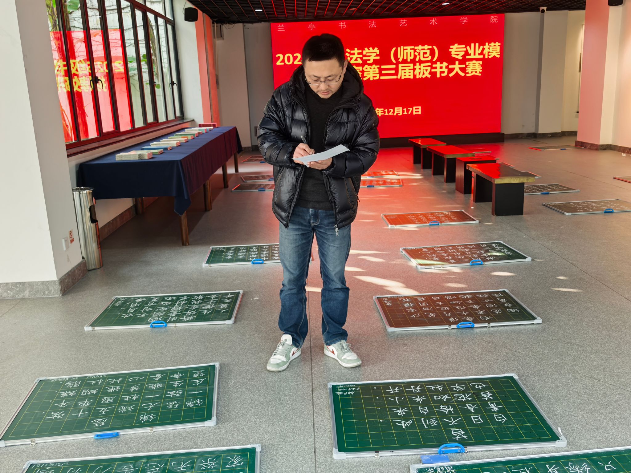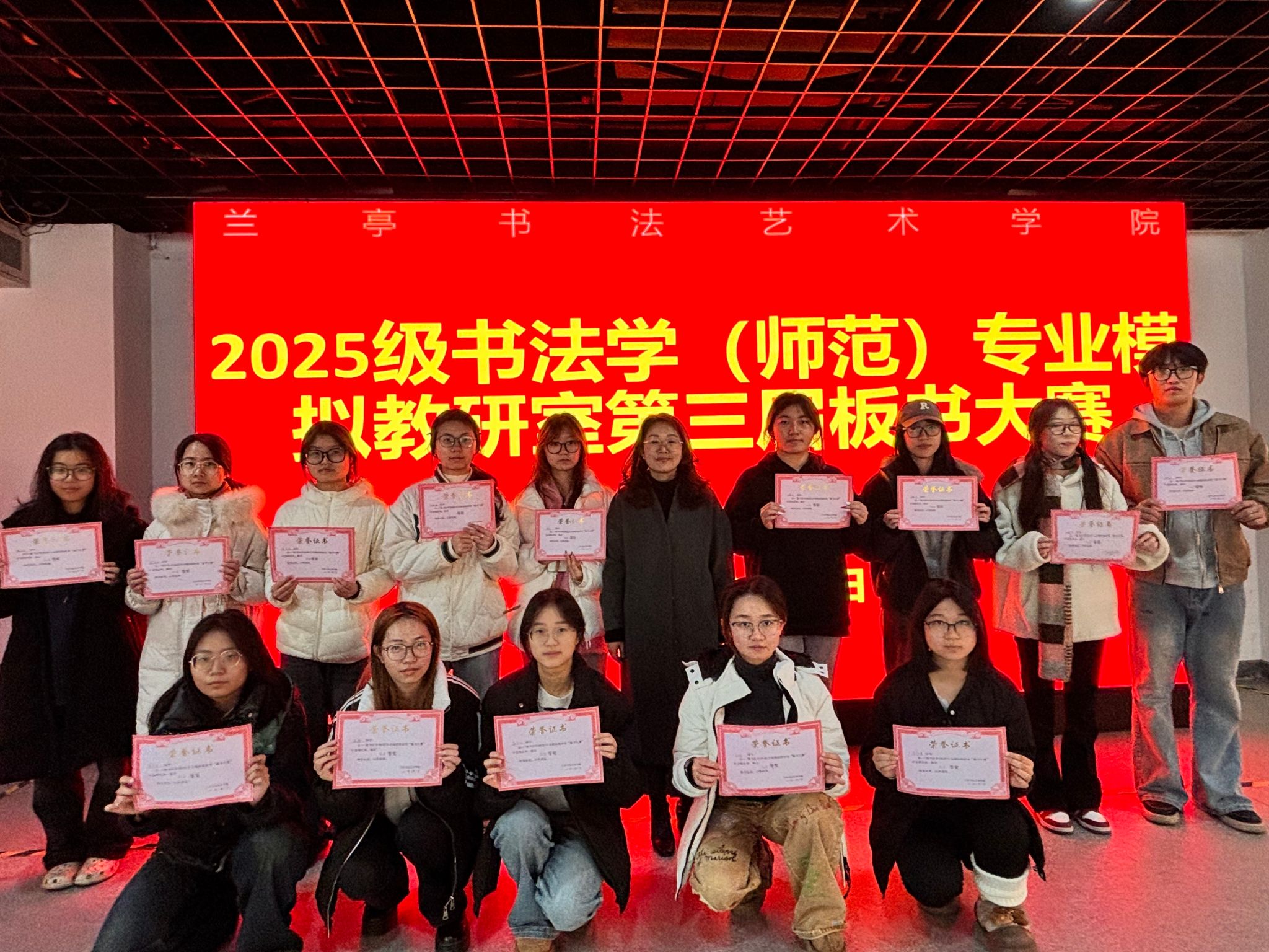 为切实夯实师范生专业基础,全面提升板书书写技能,搭建起以赛促练、以展促学的优质实践平台,12月17日,兰亭书法艺术学院精心筹备并成功举行了2025级师范生板书大赛。此次大赛紧密聚焦书法艺术在课堂实践中的有效运用,致力于提升学生的板书设计与书写能力,为师范生未来的教学工作筑牢根基。
