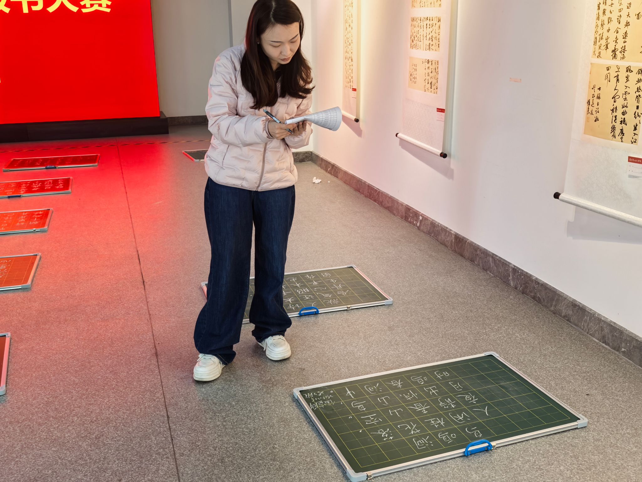 本次比赛由学院模拟教研室教师王紫旋牵头组织,面向书法学(师范)专业2025级全体学生。教师代表陈文龙、李群辉、贾笠、王紫旋担任评委,他们从笔法的精准度、结构的合理性、章法的协调性以及教学适用性等多个关键维度,对参赛作品进行了全面且细致的综合评价,确保评选结果的专业性与公正性。
